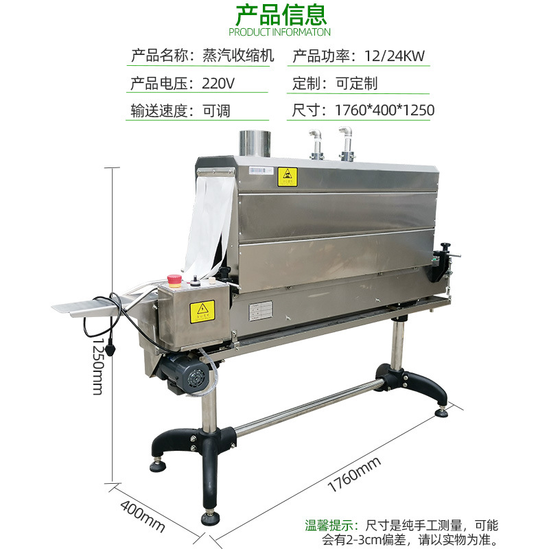 • 適用范圍廣:可以對各種形狀和尺寸的產品進行收縮包裝,只要產品的尺寸在收縮通道的設計范圍內。無論是規則形狀的產品,如長方體的盒子、圓柱體的瓶子,還是不規則形狀的產品,都可以通過調整蒸汽的參數和輸送帶的速度等方式,實現良好的收縮包裝。