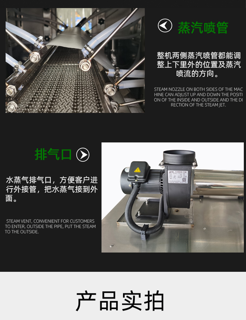 - 減少廢氣排放:與一些傳統的熱收縮設備(如使用燃氣直接加熱空氣的熱風收縮機)相比,蒸汽收縮機的廢氣排放量相對較少。這是因為蒸汽收縮機主要利用蒸汽的潛熱進行包裝材料的收縮,蒸汽在收縮通道內循環使用,只有少量蒸汽在完成熱交換后排出,而且排出的主要是水蒸氣,對環境的污染較小。