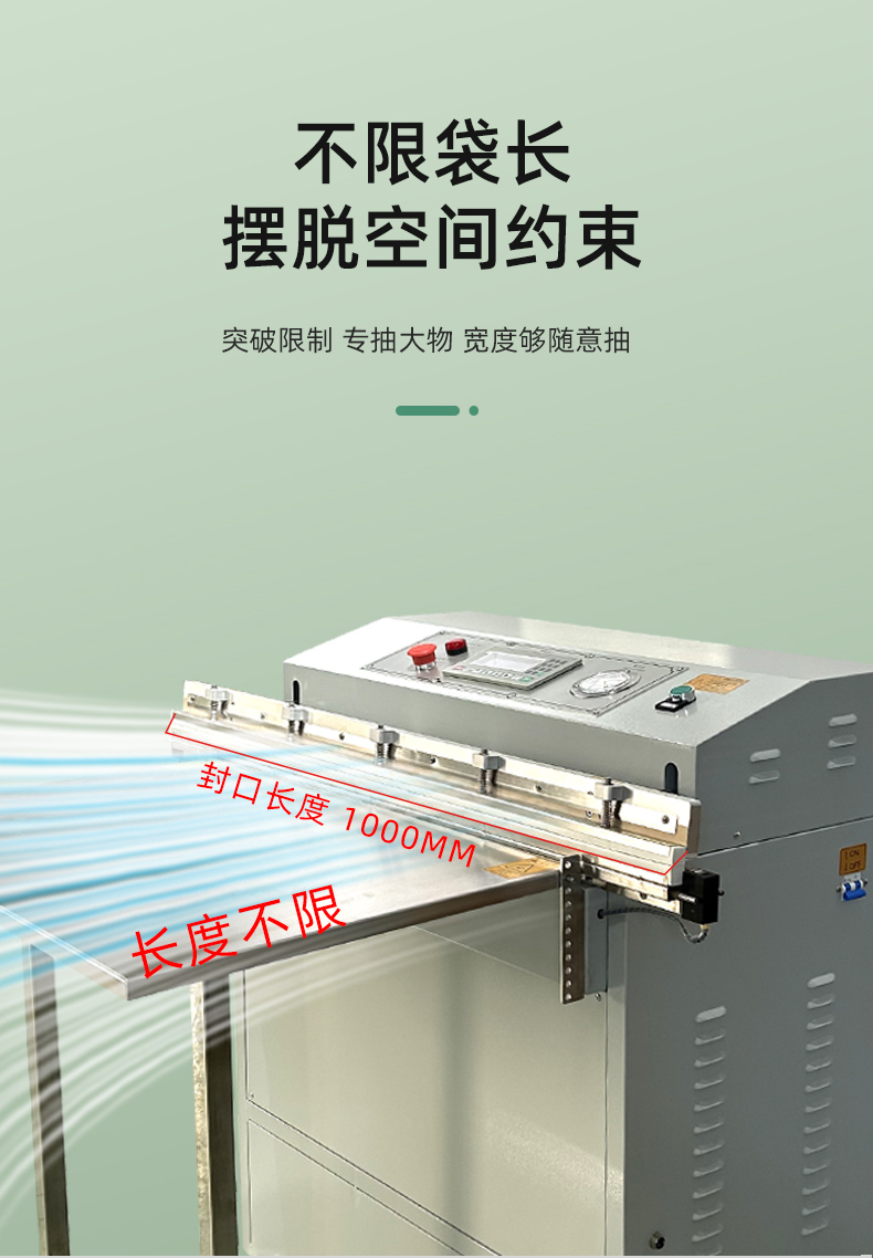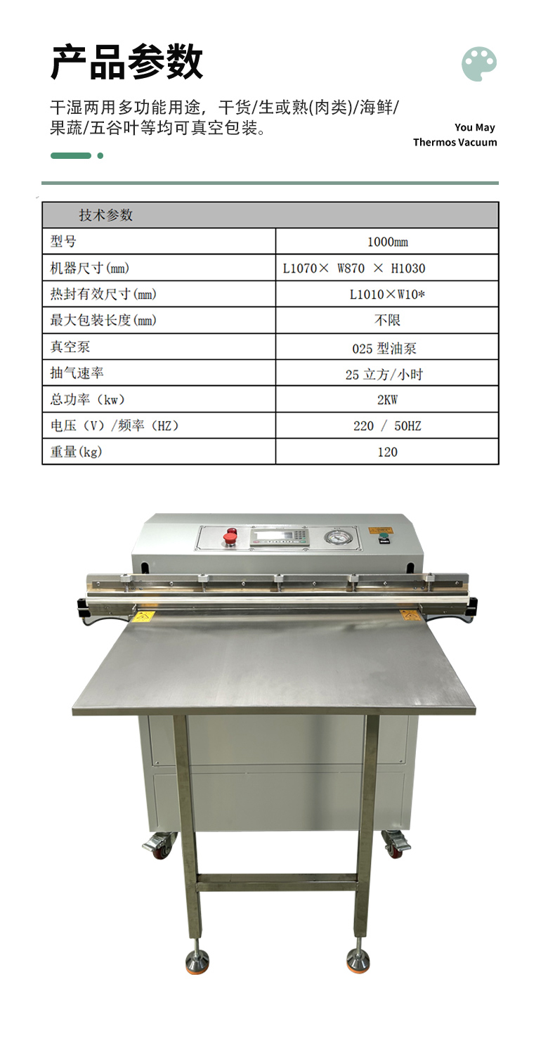 外抽真空包裝機包裝尺寸不受限可輕松處理超長、超大的包裝袋,適合整只鹵味、大型農產品等不規則產品。